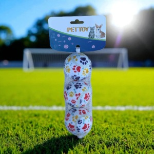 Evcil dostlarınızın eğlenceli vakit geçirmesi için tasarlanmış, patili desenli, hafif ve güvenli 3’lü oyuncak top seti.