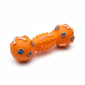Yaklaşık 10–13 cm uzunluğundaki bu dumbbell formundaki oyun oyuncak, köpeğinizin dişlediğinde veya bastırdığında içindeki ses düzeni sayesinde hafif bir squeak sesi verir. Dış yüzeyi dayanıklı plastik veya kauçuk olabilir. Pil gerektirmez; tamamen mekanik ses sistemiyle çalışır. Tasarımı fetch (at-getir) oyunları, çiğneme ve bağımsız oyun için uygundur.